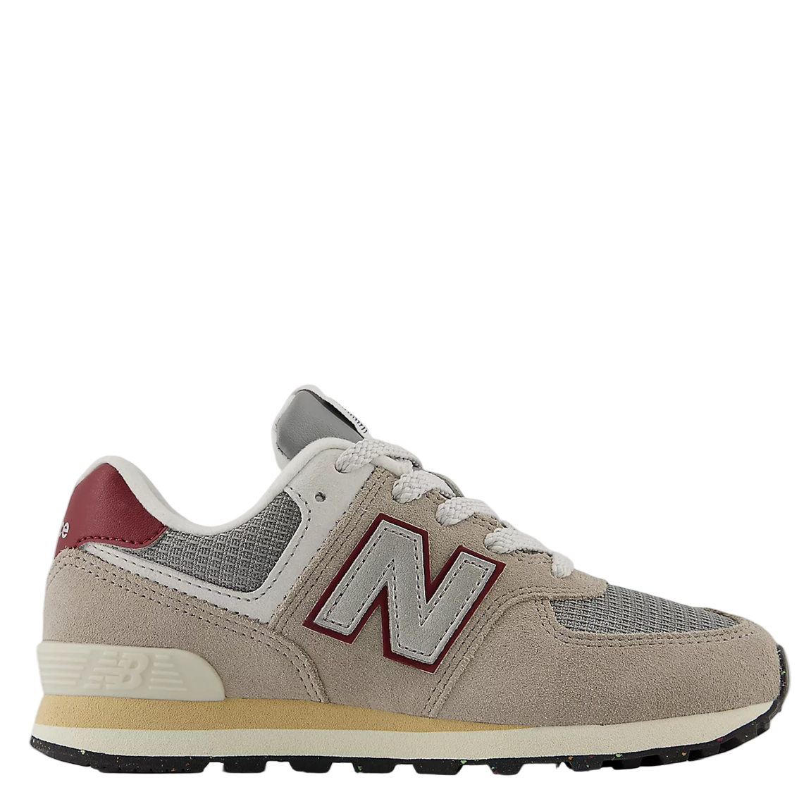 The most New Balance shoe ever’ says it all, right? No, actually. The 574 might be New Balance's unlikeliest icon. The 574 was built to be a reliable shoe that could do a lot of different things well rather than as a platform for revolutionary technology, or as a premium materials showcase. This unassuming, unpretentious versatility is exactly what launched the 574 into the ranks of all-time greats. As hybrid road/trail design built on a wider last than the previous generation’s narrow racing silhouettes, the 574 offered a uniquely versatile mix of new, different, uncomplicated, rugged, durable, and comfortable that was adopted as a closet staple across the globe. That’s why today, the 574 is synonymous with the boundary defying New Balance style, and worn by anyone. With the 574 for kids, the same style inspiration is pared down for growing feet.