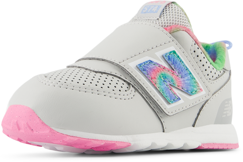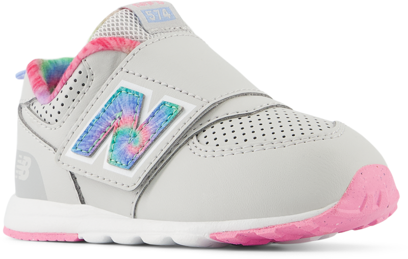 The 574 was built to be a reliable shoe that could do a lot of different things well rather than as a platform for revolutionary technology, or as a premium materials showcase. This unassuming, unpretentious versatility is exactly what launched the 574 into the ranks of all-time greats. As hybrid road/trail design built on a wider last than the previous generation’s narrow racing silhouettes, the 574 offered a uniquely versatile mix of new, different, uncomplicated, rugged, durable, and comfortable that was adopted as a closet staple across the globe. That’s why today, the 574 is synonymous with the boundary defying New Balance style, and worn by anyone. With the 574 NEW-B Hook & Loop for kids, the same style inspiration is pared down for the smallest feet.