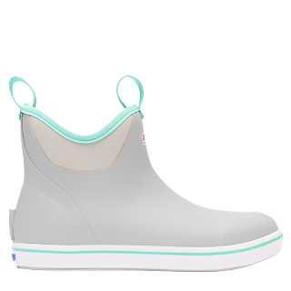 The Ankle Deck Boot collection has been crafted specifically for Off-Shore anglers. Anglers are athletes, and like any athlete they need the best footwear to help them perform at a high level. Xtratuf created a lightweight design with the same slip-resistant Chevron outsole found in their Legacy boots. The performance ankle deck boot is the perfect boot for any on the water athlete looking for protection with slip-on-and-go styling. This Light Gray boot features a complementary seafoam detail at the sole, pull-tabs and top lining for added style.
