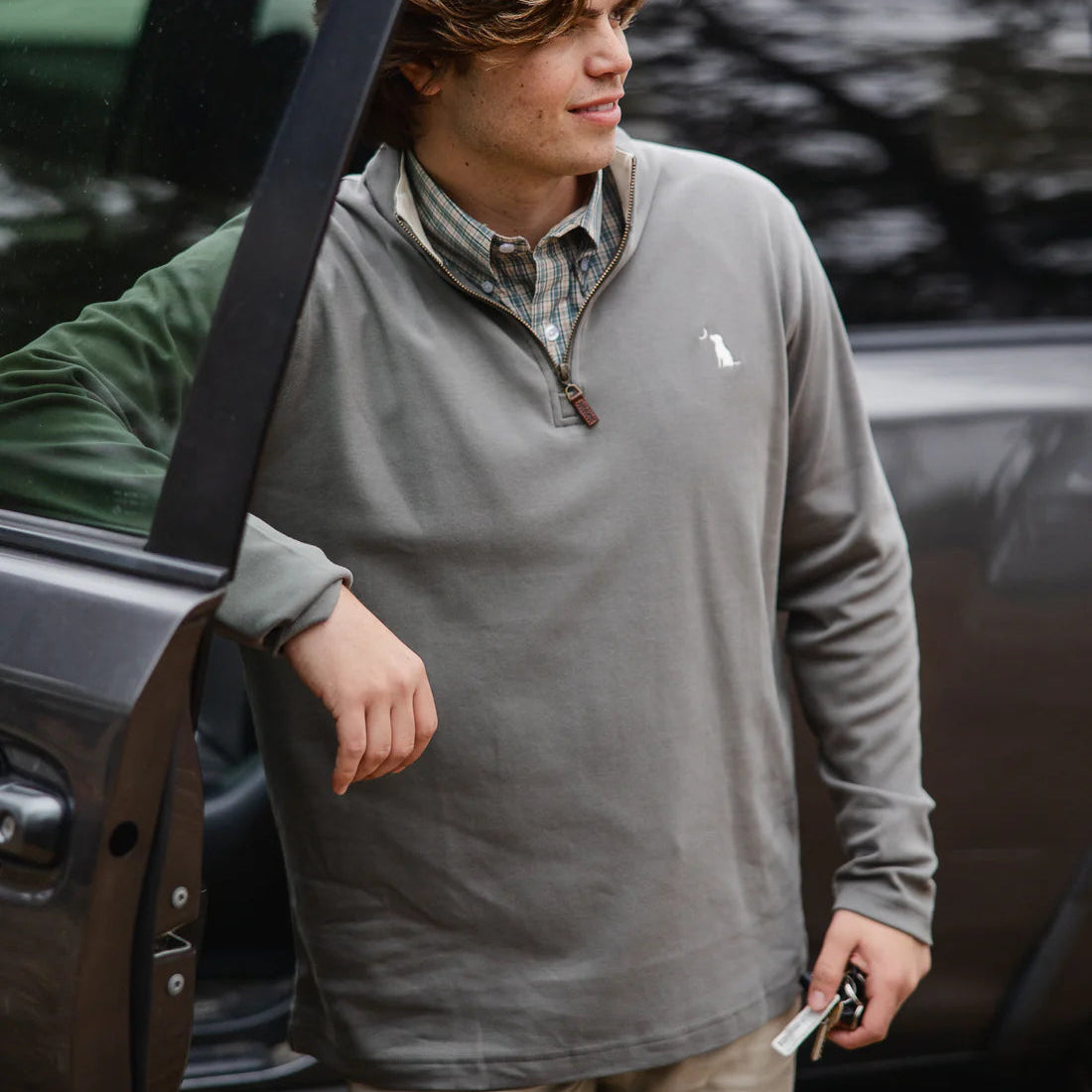 Wanting to add a new staple to your wardrobe? Look no further! Constructed in 100% cotton, the Bentley quarter-zip will elevate your everyday look while keeping you as comfortable as ever! It is completed with a durable front zipper, dog & moon chest