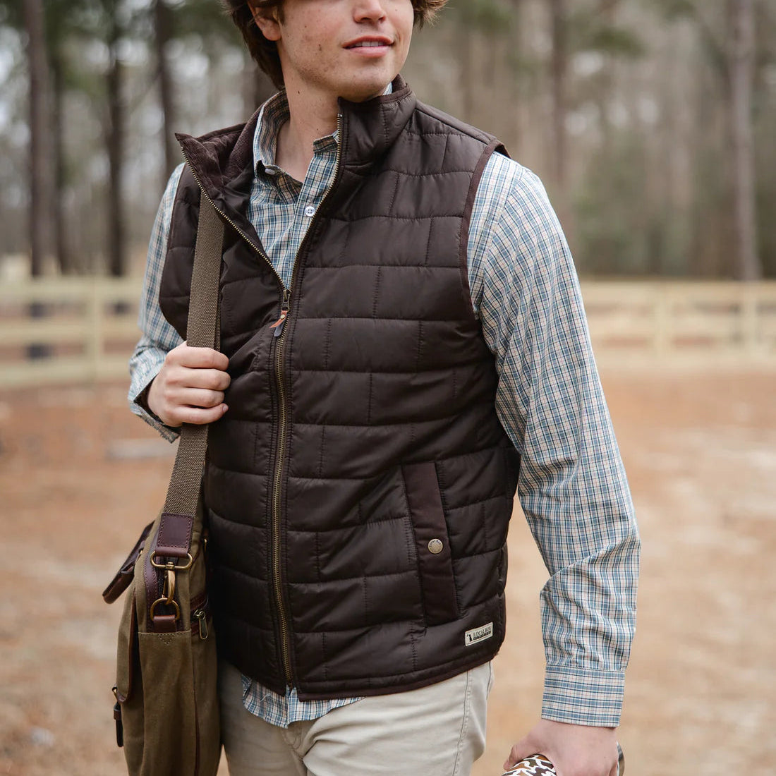 Over a shirt or under a jacket, this quilted vest is an all-purpose powerhouse. Local Boy Outfitters' double stitched it throughout for added wear strength, gave it a hardy front zipper for reliable durability, and lined the collar in soft corduroy for improved comfort and weather resistance. Finishing touches include two snap side pockets, a convenient interior zip pocket, and their custom LBO logo patch. From tailgating to bird chasing, it’s sure to add style to any look or situation.