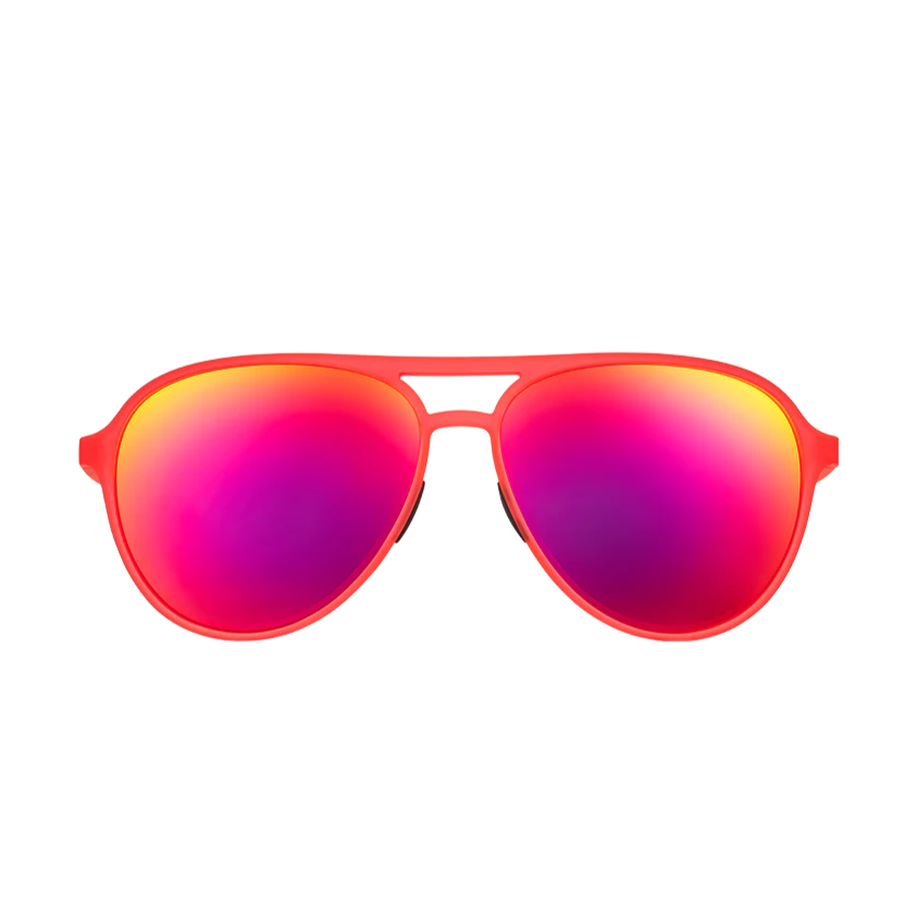 These red aviator sunglasses are named after Captain Blunt, a real pilot who happens to be goodr co-founder’s dad. That’s the only reference these no slip red frames and polarized red reflective lenses are making. Great for biking, running, golfing, and eating olympic quantities of taquitos.