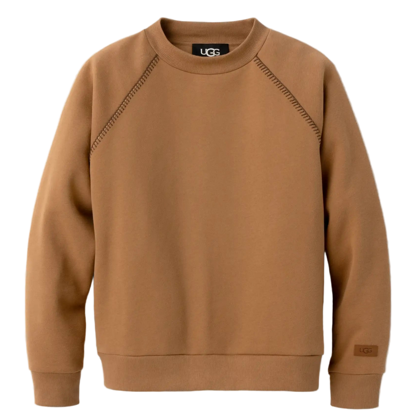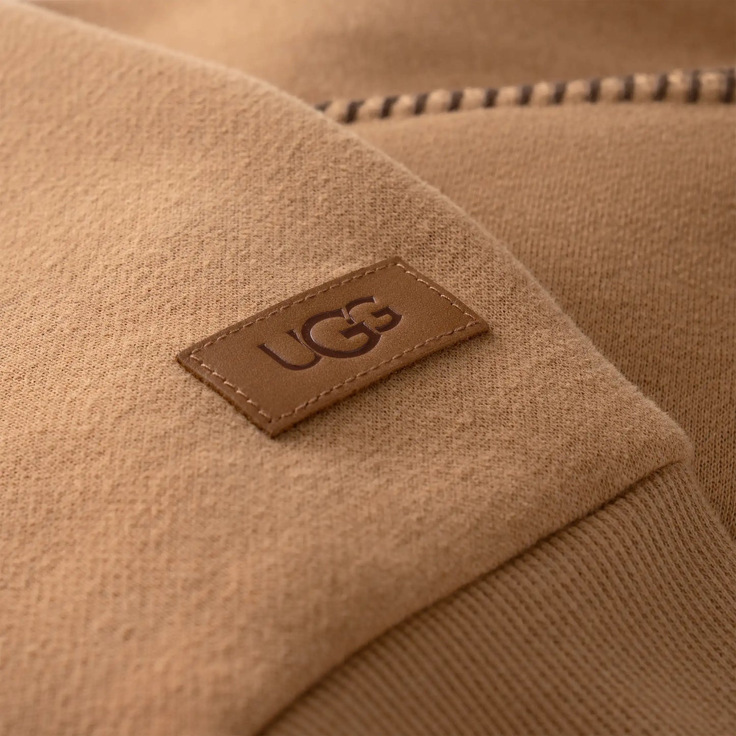- The UGG® License Plate leather label on wearer's left sleeve