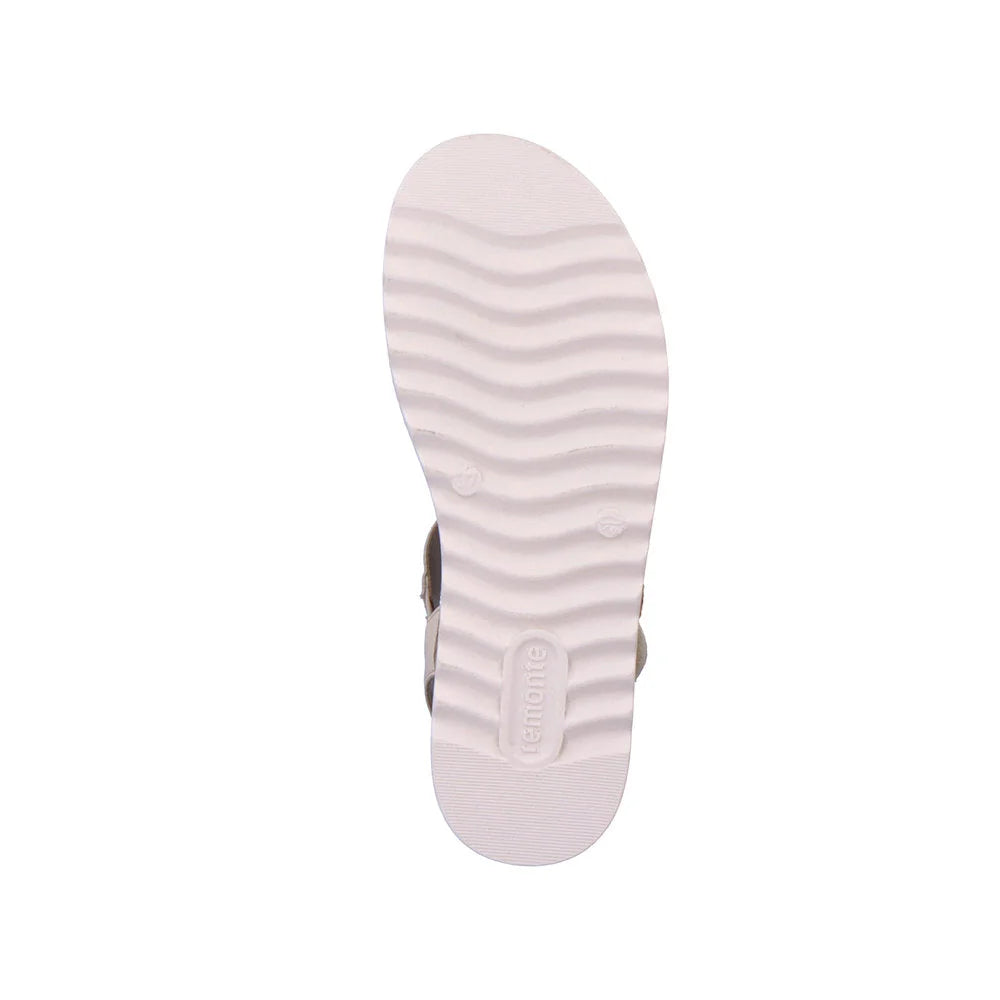 Attention: Favorite shoe potential! These vanilla-colored remonte strap sandals made of smooth leather will convince fashion-conscious women but they also impress with their great features. For good support, the practical shoes are equipped with a narrow heel strap, wide straps and a hook and loop fastener. The soft removeable footbed and the flexible and especially light platform sole are great goodies on top.