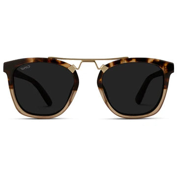 An aptly oversized square design with metal bridge detail makes Demi that double-take, compliment-getting type of frame. Crafted from patterned acetate paired with gold accents and polarized lenses adds an air of understated luxury.