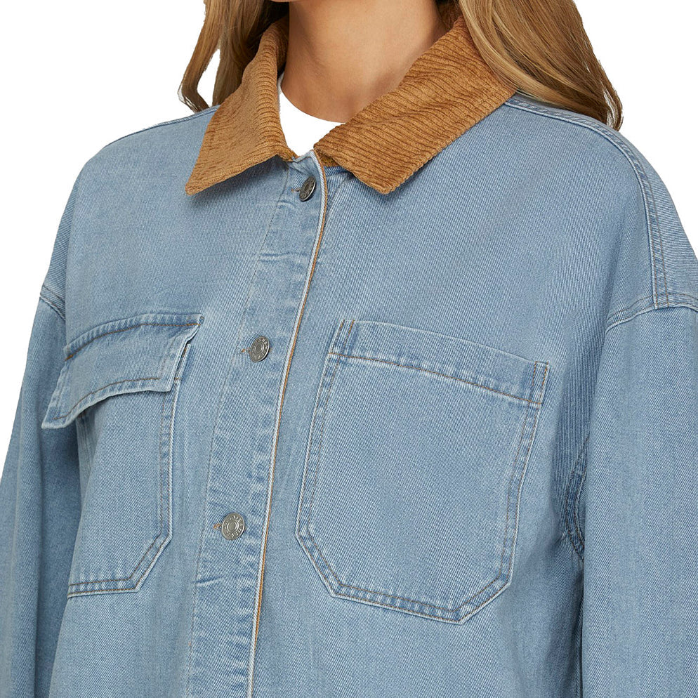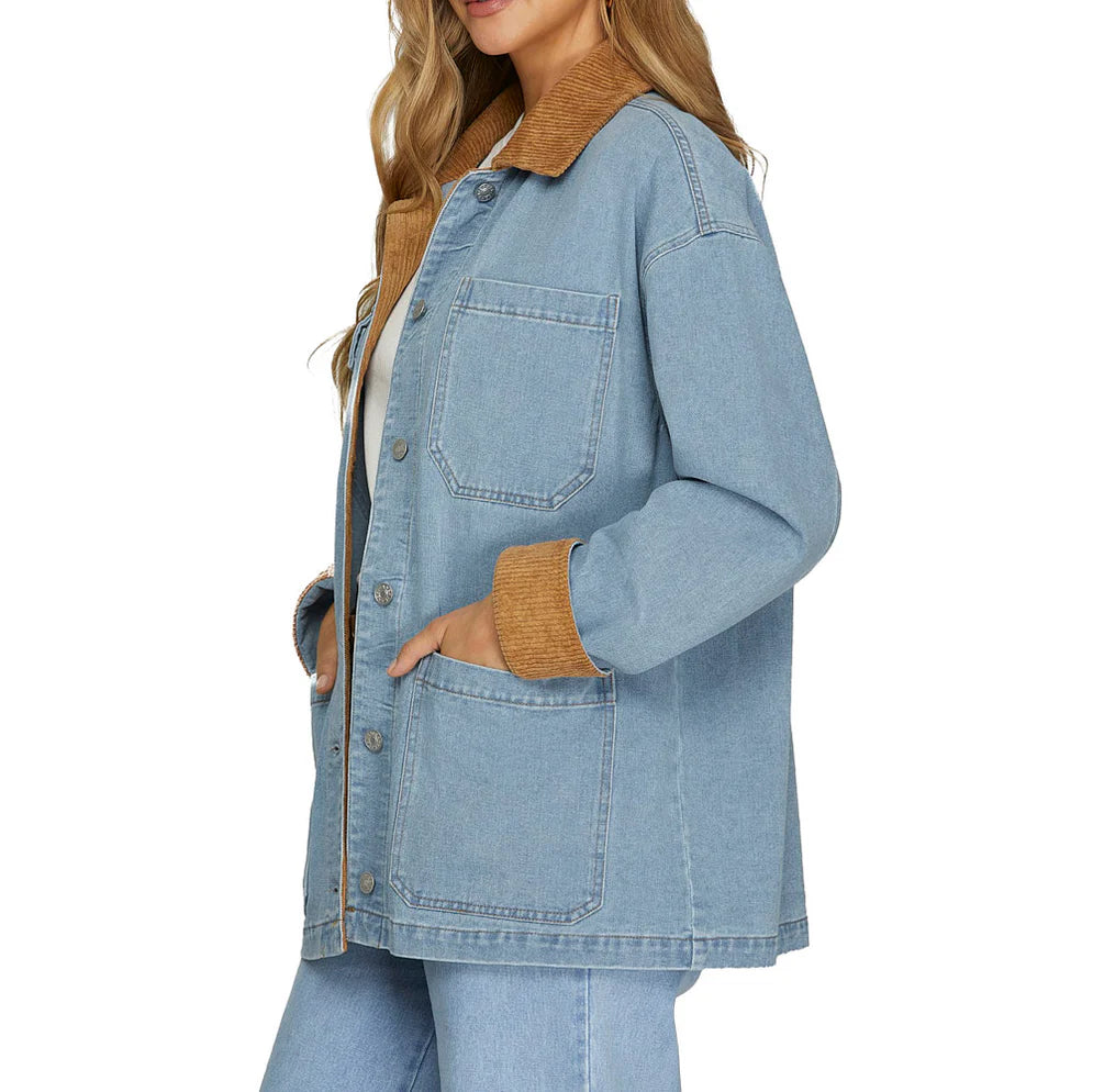 This washed denim barn jacket is your new go-to for tackling chores or casual hangouts. Featuring a light blue wash with playful contrast collar and cuffs, it adds a twist of style to rugged durability. Front pockets keep your essentials close while you work or wander—comfort and function perfected in one cool package.