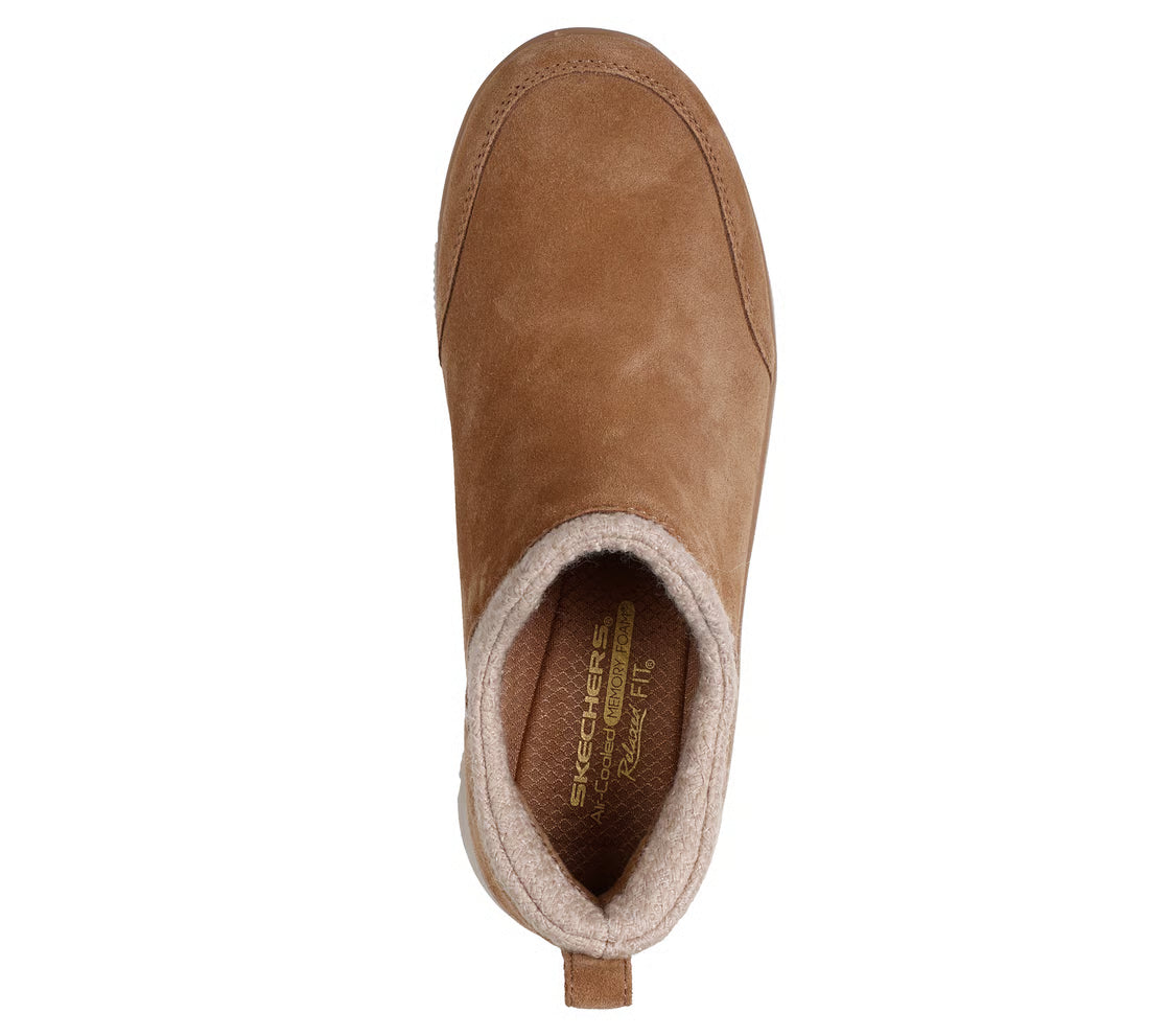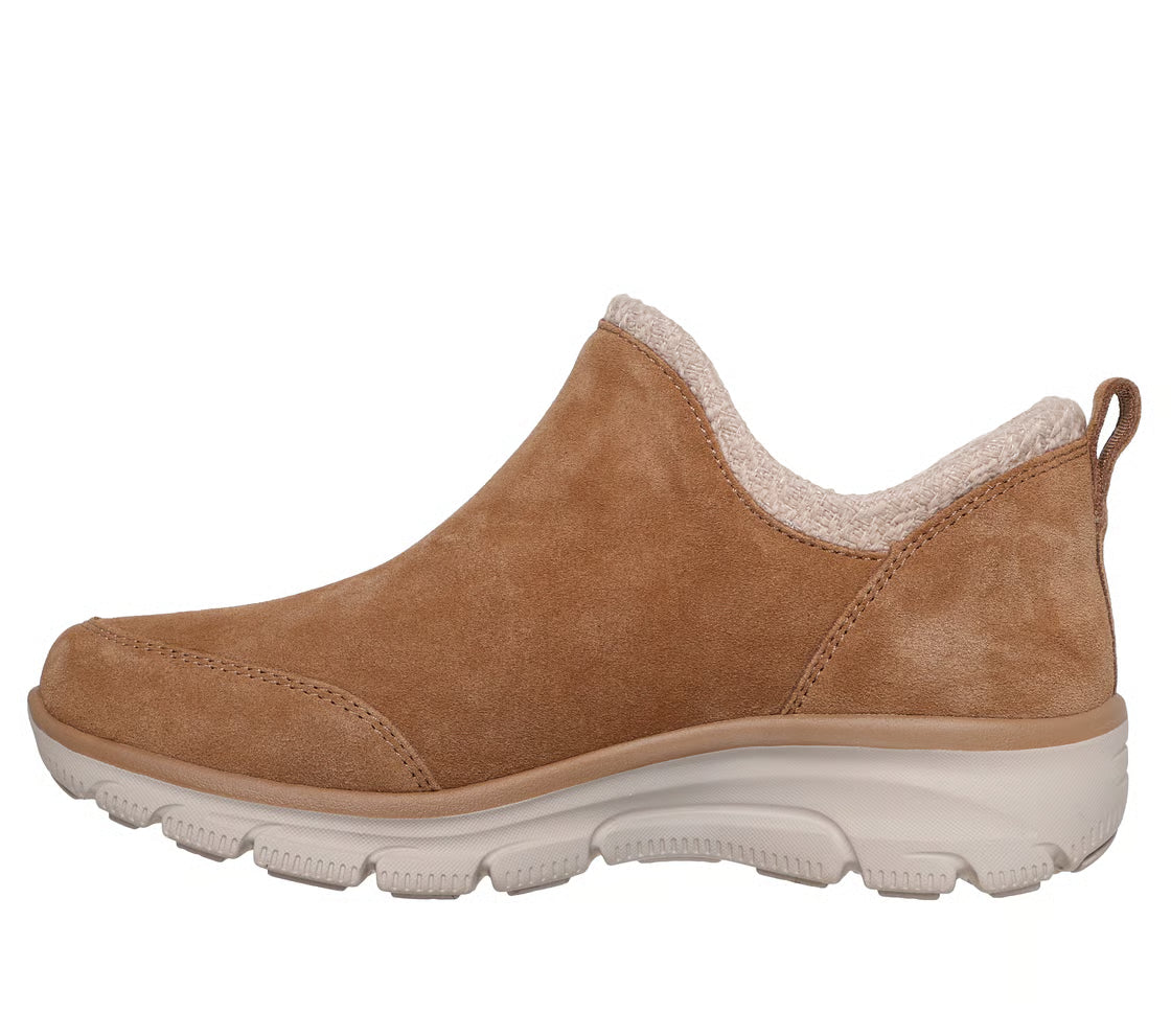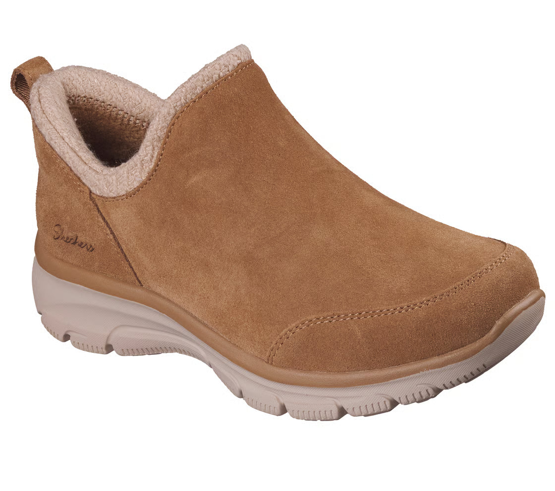 Get into the season with effortless cozy comfort wearing Skechers Relaxed Fit®: Easy Going - Sweet Behavior. This pull-on bootie features a roomy 3M® Scotchgard® treated suede upper with generous chenille lining and a cushioned Skechers Air-Cooled Memory Foam® insole.