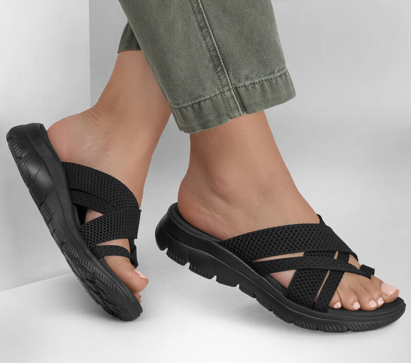 Enjoy sunny days in breezy comfort with Skechers Summits - Fantasy Walk. This vegan strappy sandal features a knitted upper with a cushioned Yoga Foam® footbed.