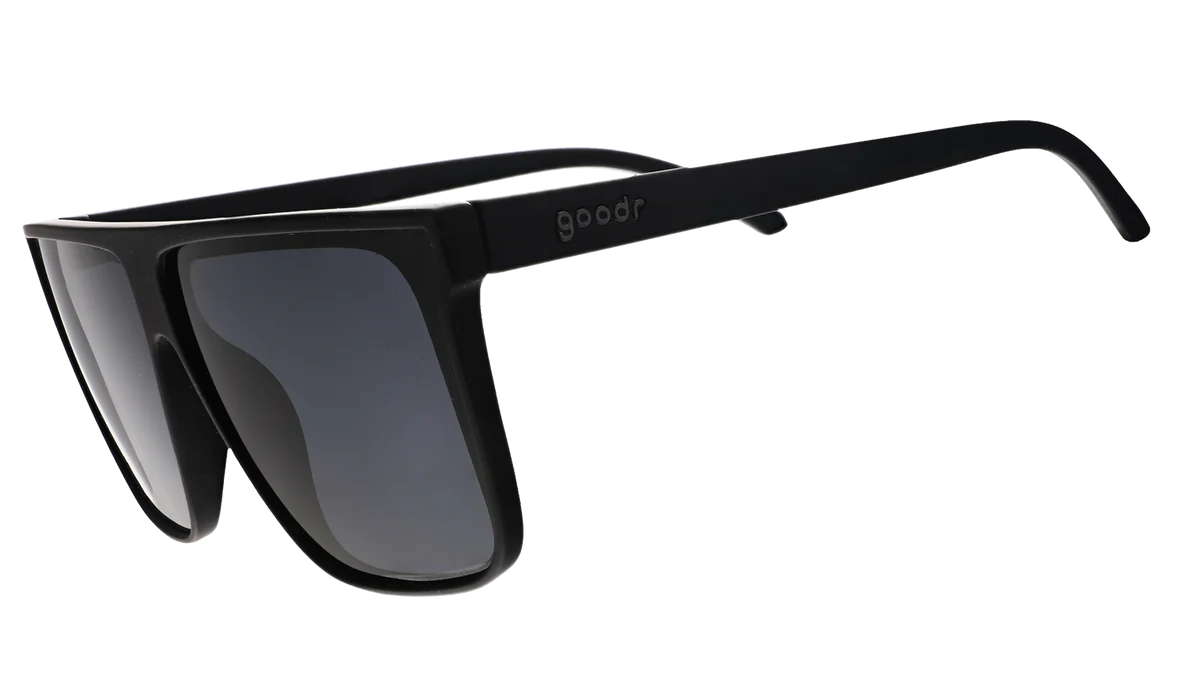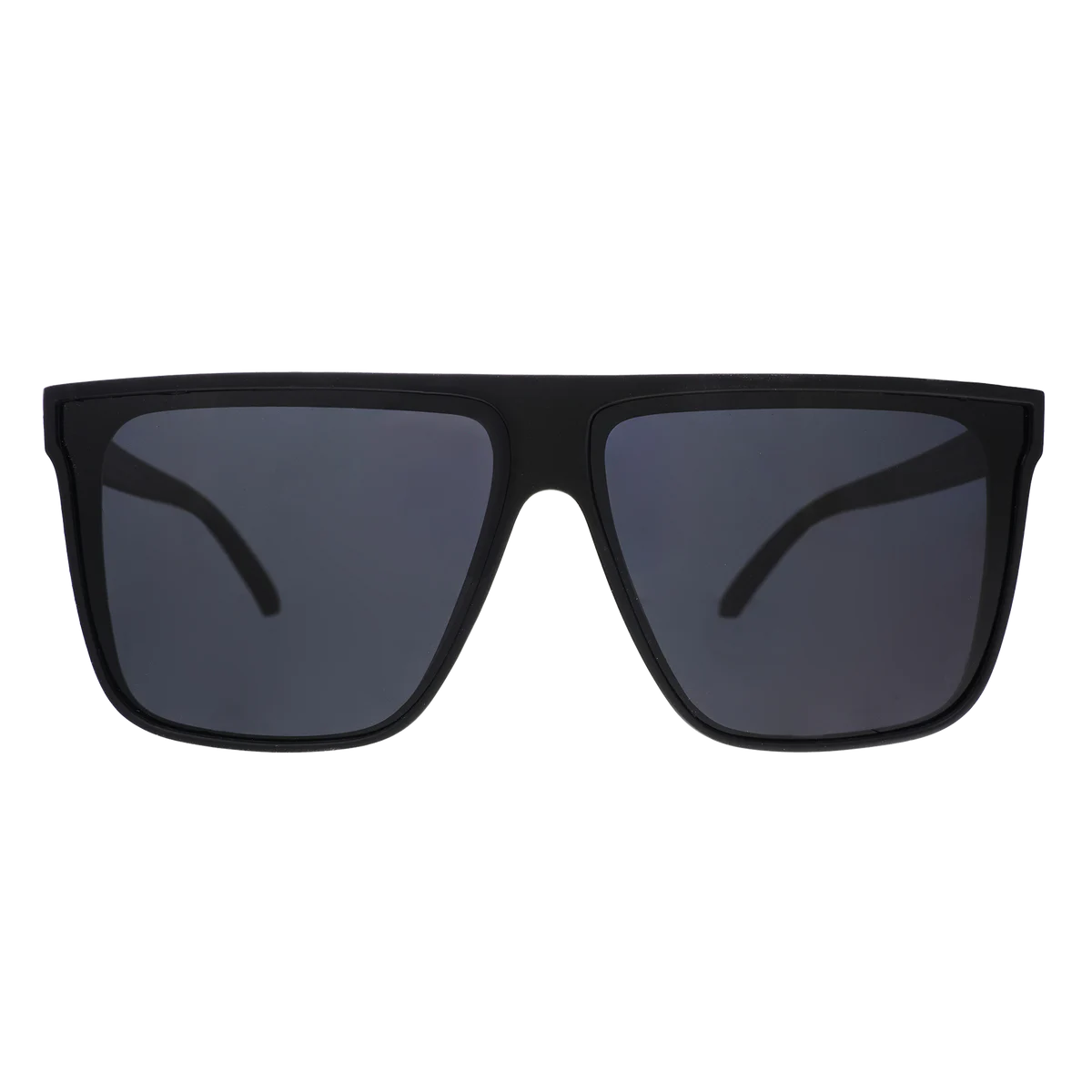 Fashion Week, smashion week. Who needs it? Obviously, not YOU. You're far too cutting-edge. Too avant-garde. A fashion revolutionary, if you will. Just like these black wide-fit, oversized flat-top sunglasses with black non-reflective lenses.