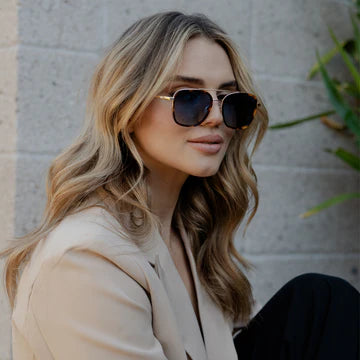 Gia’s dual-material design and softly squared lines create an aviator that’s anything but average. Luxe details like a gold metal frame wrapped in acetate take these shades to the next level.