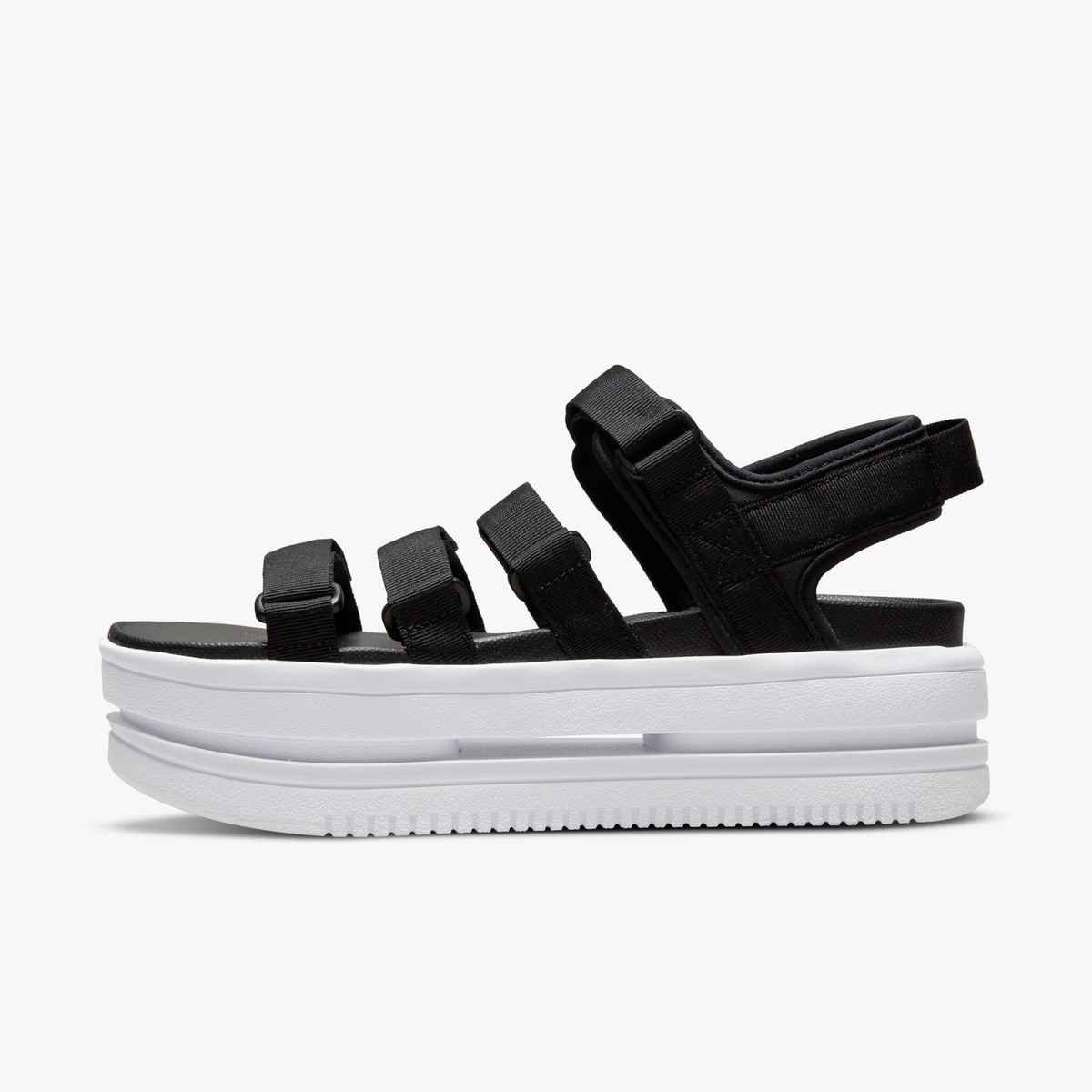 Lifted. Classic hoops detailing. Strappy but easy to wear. Check all the boxes in the Nike Icon Classic. Its big, bold midsole wows with comfort. The outsole pattern delivers iconic Air Force 1 vibes, while the multiple hook-and-loop straps add a fearless look. Get ready to shine with this new voice in sandal style.