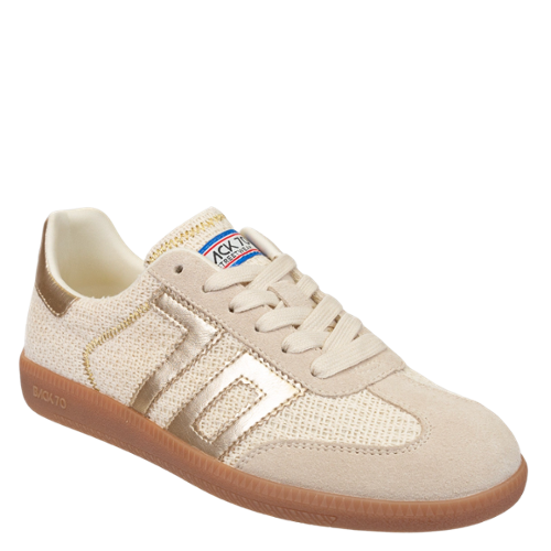 Add a feminine touch to your wardrobe with these soccer-inspired sneakers. Iuta's woven upper lends the style to homespun, resort wear vibe that gives you all the feel-good energy. These statement kicks are scoring big time on the fashion scene with the perfect blend of planned and off-duty vibes. Refresh your kicks with this artisanal boutique style blending a fusion of retro chill and modern edge.