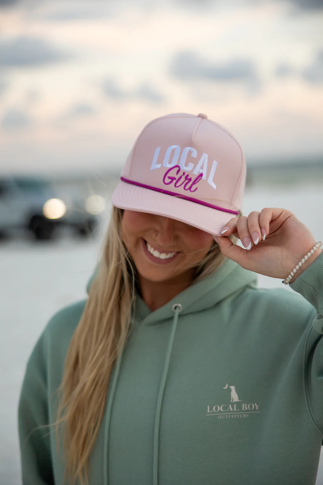 Simple and sleek, Local Girl Rope Hats offer a relaxed fit with subtle rope accent. Adjustable closure for all-day comfort. Perfect for all your outdoor adventures!
