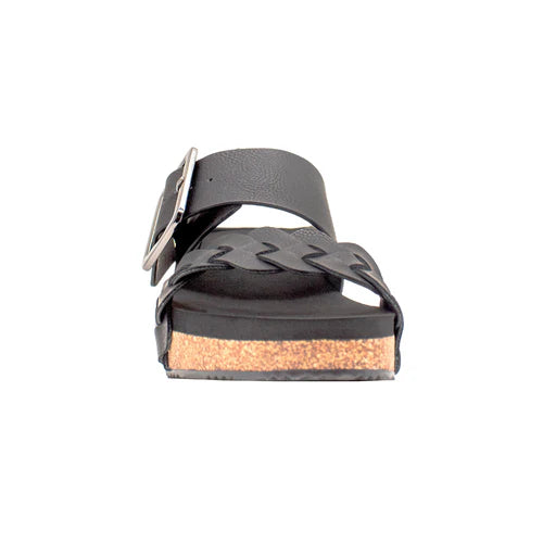 Volatile's slide sandal Morel, offers a perfect blend of casual style and all-day comfort, featuring a chic woven vamp strap and a sleek metal buckle for an added touch of sophistication. With a signature comfort EVA insole, this sandal provides cushioned support with every step, making it the ideal choice for both relaxed days and stylish outings.