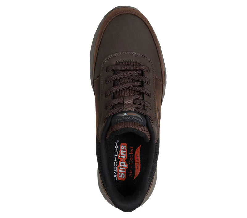 Easy-wearing convenience pairs with roomy support in Skechers Hands Free Slip-ins® Relaxed Fit®: Arch Fit® Orvan - Moxley. Designed with Skechers' Heel Pillow®, this EFFICIENCY™ design features a leather and synthetic upper with stretch laces, a Glide-Step® midsole, and removable Arch Fit® insole.