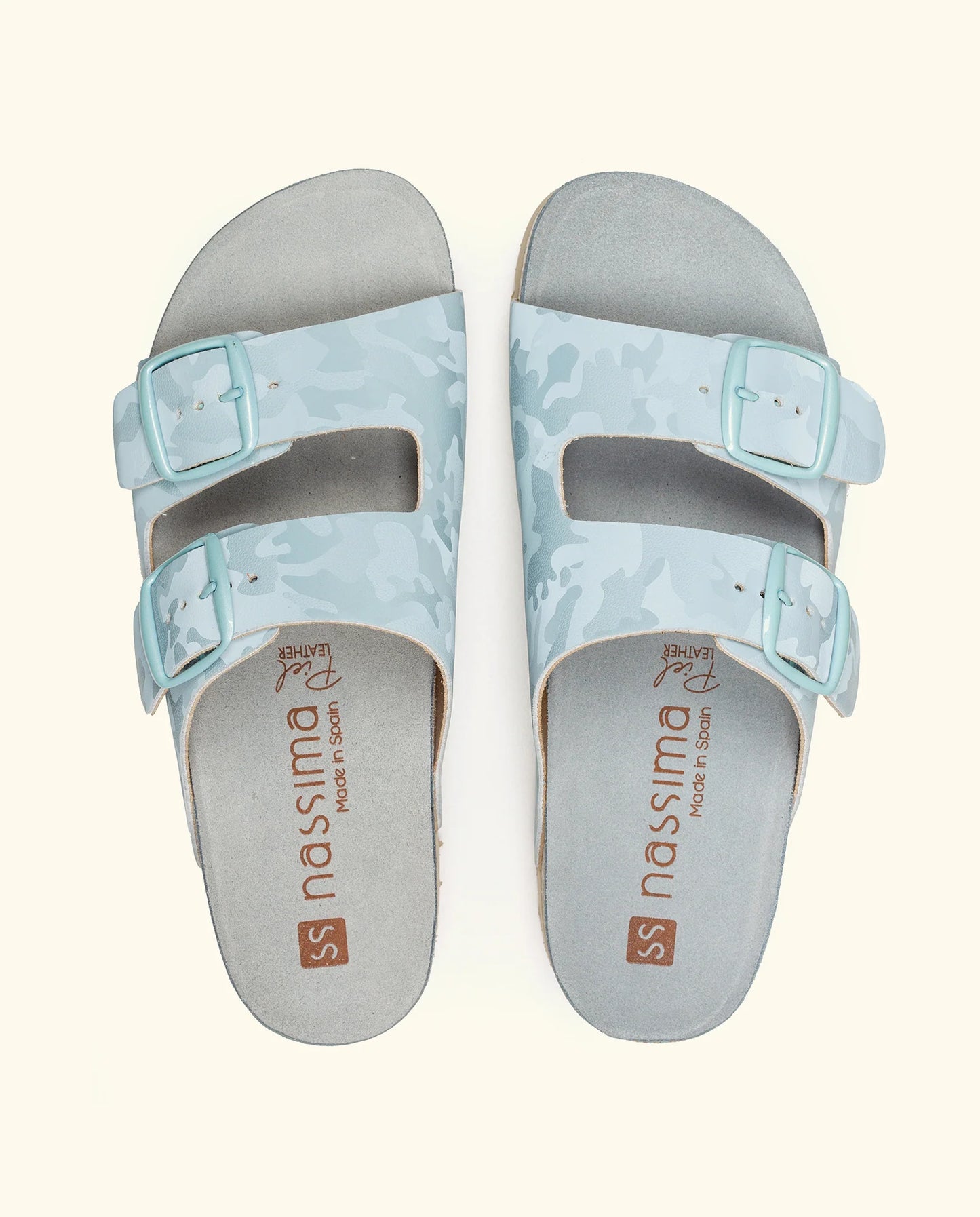 The NOJA 001 sandal, with two large buckles characteristic in its design. It stands out for its print and simplicity. It has a padded and non-slip insole that promises maximum comfort. It has a 25 mm sole. It is handcrafted in Spain, made of leather and using environmentally friendly vegetable dyes.