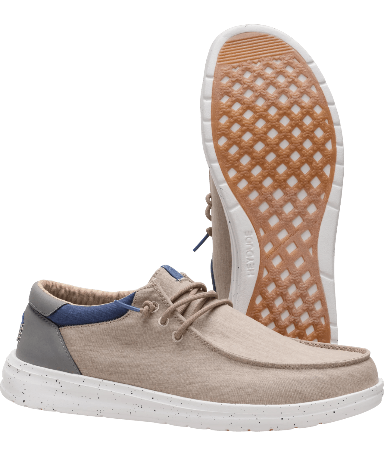 Whoever said you had to tie your shoes to make them fit right obviously never tried HEYDUDE™. The Paul's washed woven upper reminds of sun-drenched days, while the speckled sole is cushiony, bendy and light, like a pillow. Stretch laces and an easy-on design make them a VIP lounge for your feet.