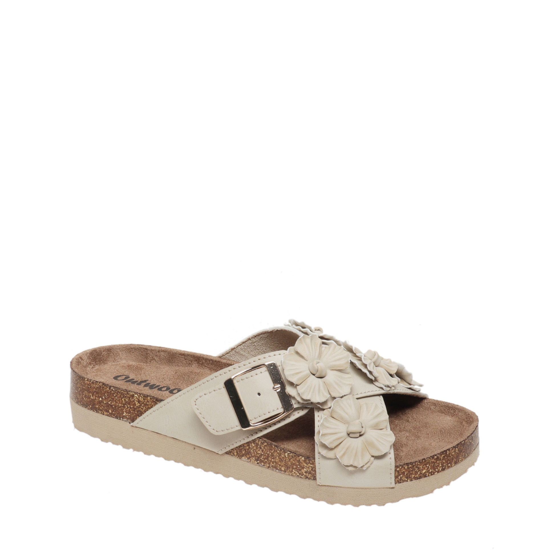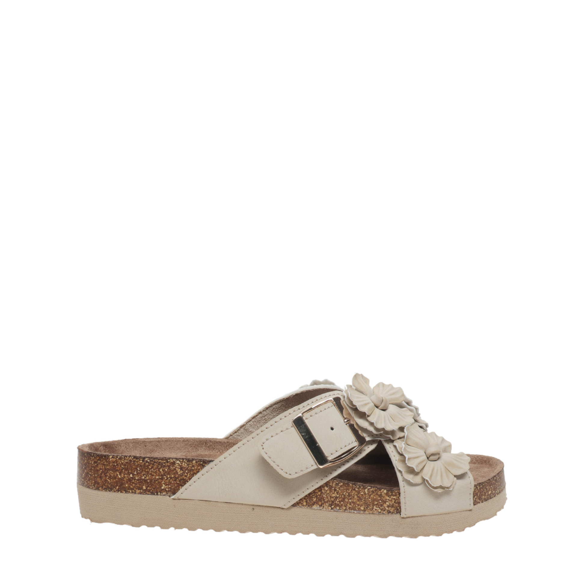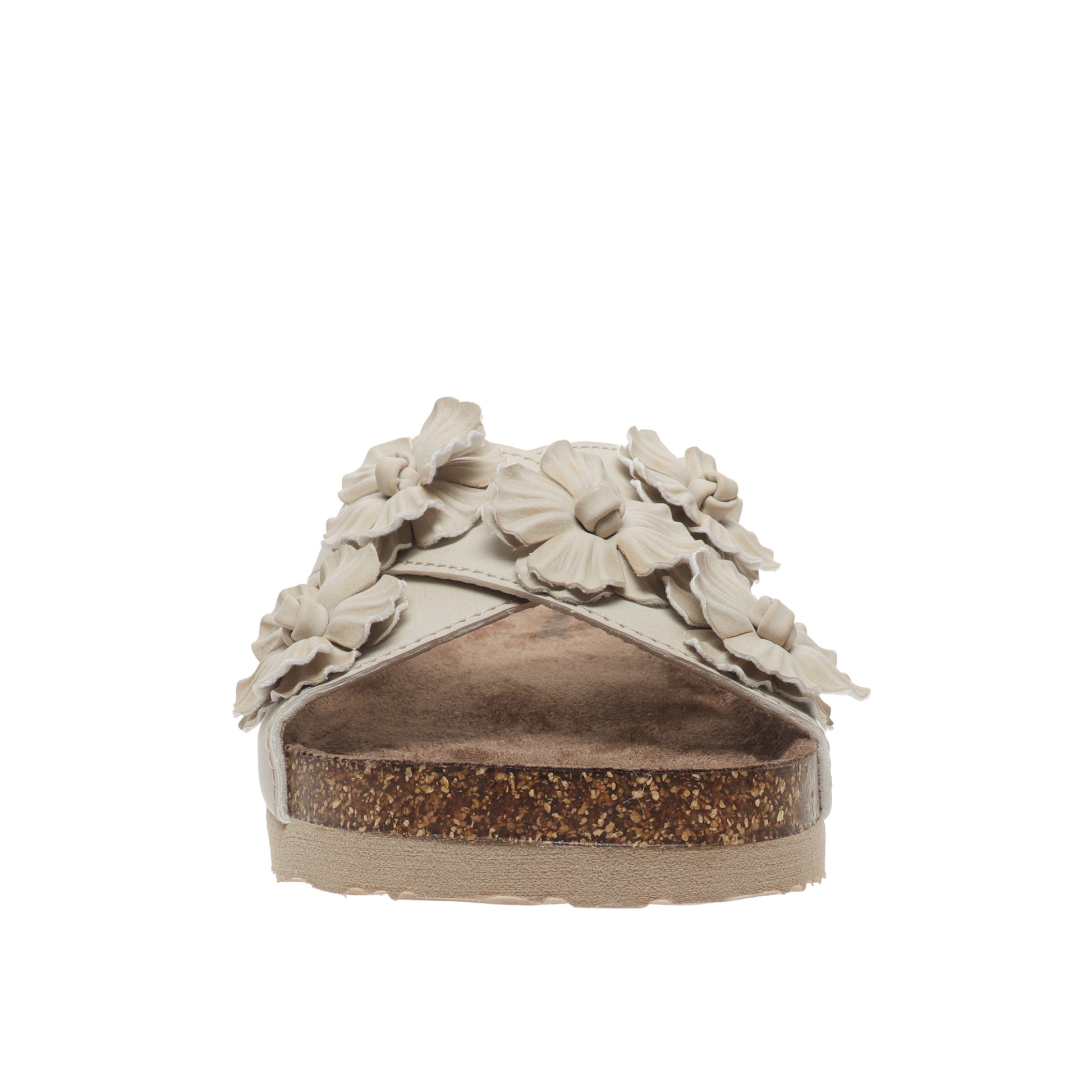 The Prime-3 sandal in Nude features delicate applique flowers on crossover straps and a gold buckle. It's the perfect feminine sandal for spring and summer days!