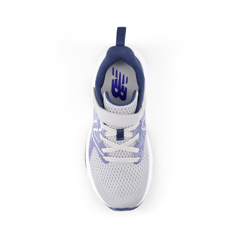 The bold New Balance Rave Run v2 Bungee Lace with Hook and Loop Top Strap kids’ running shoe delivers plush comfort with a cool, youthful vibe. The mesh and synthetic upper is lightweight and breathable, featuring a no-sew tip for durability and no-sew saddle for midfoot support. Underfoot, an IMEVA midsole offers cushioning for everyday comfort paired with a durable rubber outsole to support all-day play. An alternative closure allows for quick changes that won't slow active kids down.