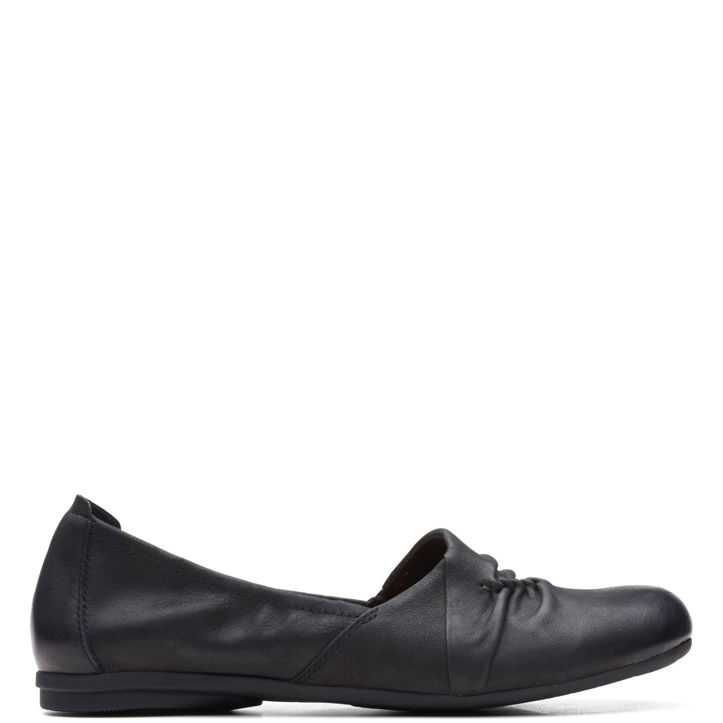 Who says casual flats can’t bag style points? Clarks' Rena Way pump blends at-home comfort with chic design – ideal for office wear. Its premium black leather uppers feature subtle stretch for a huggable fit, while a breathable leather sock makes it perfect for barefoot wear. Layered with plush underfoot cushioning and a grippy sole, enjoy free and easy steps with every wear.