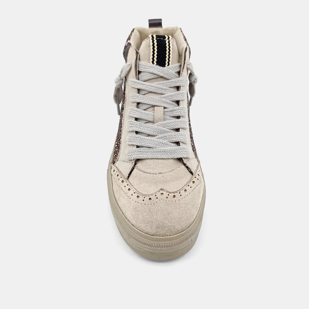 Referencing classic athletic styles, RILEY delivers an on-trend update for retro hi-top sneakers, with its colors and textures combinations. Match yours with your favorite denim hue.