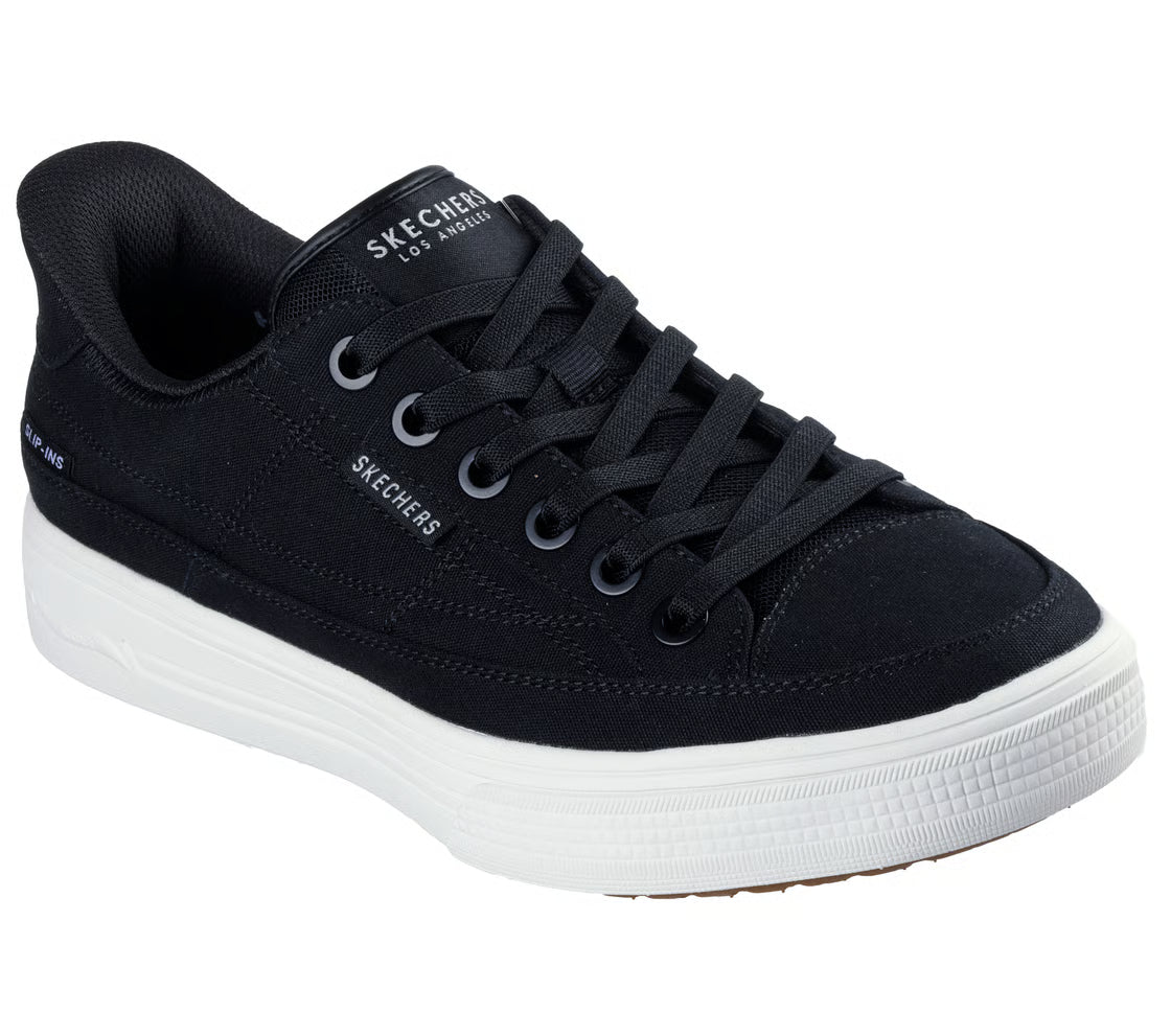 Stroll through the day in amazing cushioned comfort wearing Skechers Street™ Hands Free Slip-ins®: Arch Fit® Arcade - See Ya There. Designed with Skechers' Heel Pillow®, this casual vegan slip-on has been granted the APMA Seal of Acceptance and features a canvas upper with fixed stretch laces, a removable Arch Fit® insole, and a lightweight cushioned midsole.