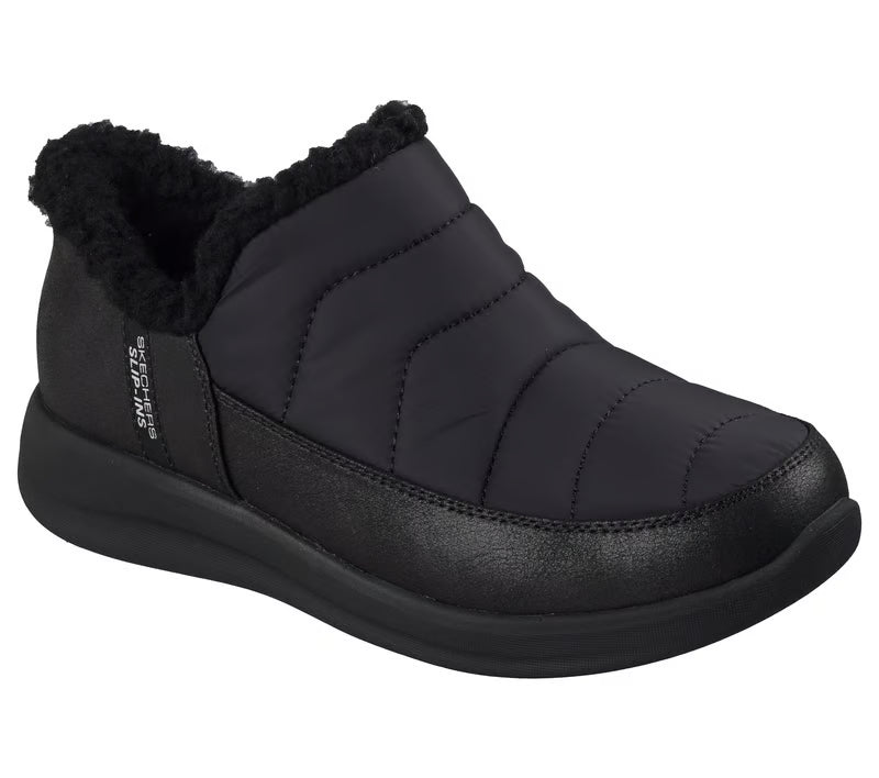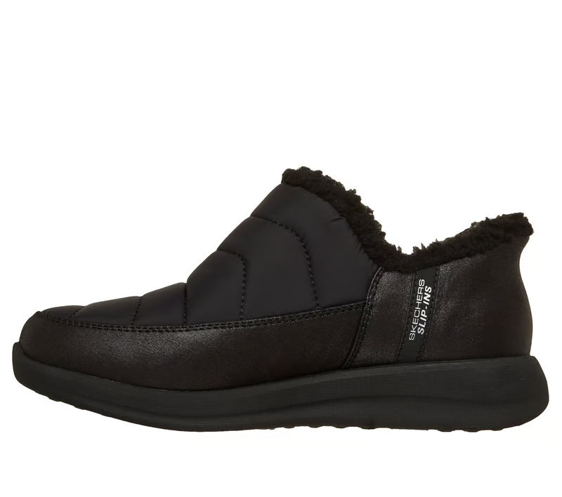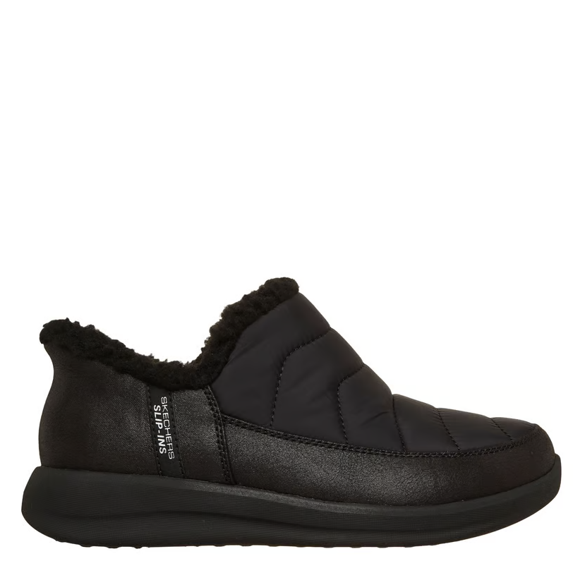 Cuddle up in comfort with Skechers Hands Free Slip-ins®: Cozy Escape - Snowpuff. Designed with Skechers' Heel Pillow®, this casual slipper features a 3M® Scotchgard® treated puffer and vegan leather upper with faux fur trim and a cushioned Skechers Memory Foam™ footbed.