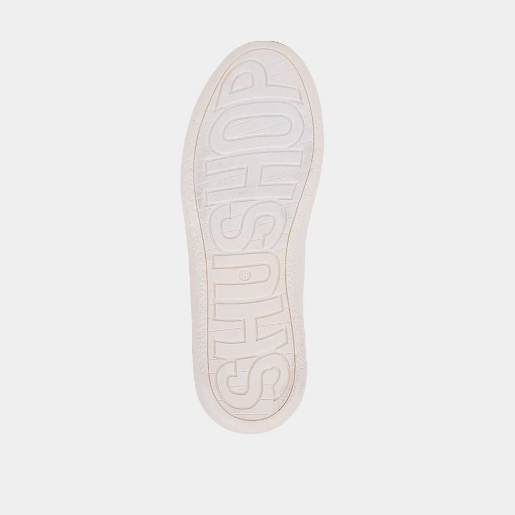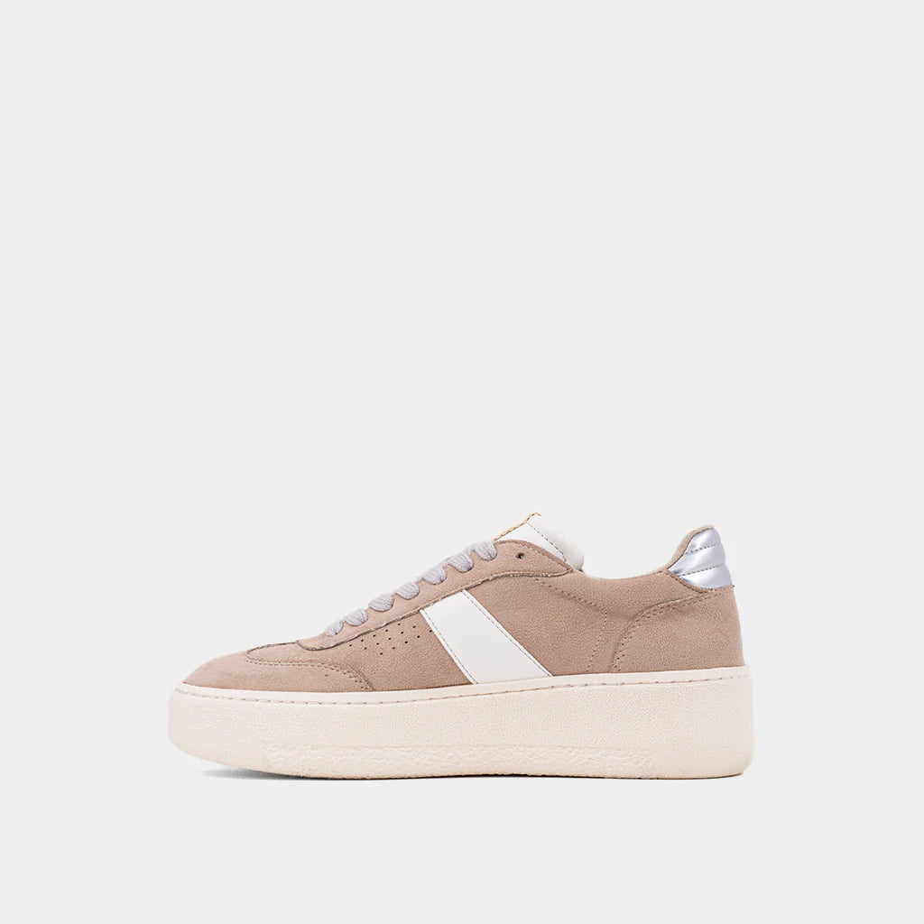 The STACEY in Beige is a perfect blend of understated elegance and modern design. Featuring soft beige suede paired with crisp white faux-leather accents, this sneaker offers a clean and versatile look. The metallic silver heel adds a touch of shine, while the chunky textured platform sole delivers height and comfort. Finished with light gray laces and the signature "S" metallic tag, STACEY is your go-to sneaker for effortless everyday chic with a neutral twist.