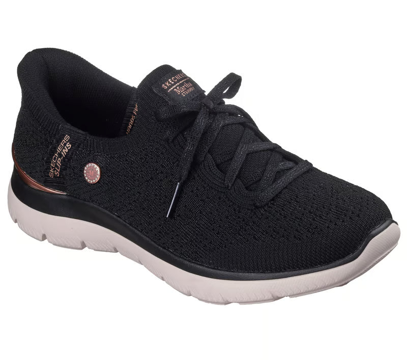 Celebrated lifestyle expert, Martha Stewart, delivers her one-of-a-kind touch to Skechers in this spirited collaboration. Slip into an easy-on brand favorite for comfort and style wearing Martha Stewart x Skechers Hands Free Slip-ins®: Summits - Floral Dreams. Designed with Skechers' Heel Pillow®, this vegan slip-on features a Stretch Fit® engineered knit upper with a tonal floral motif, decorative laces, and a cushioned Skechers Air-Cooled Memory Foam® insole.
