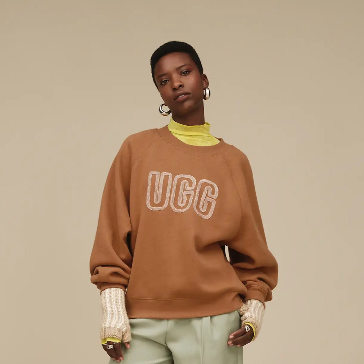 The UGG Logo Crewneck is a casual classic made with a soft cotton blend from Responsible Cotton. Featuring raglan sleeves and Graphic UGG® Font made from chenille knit yarn, this sweatshirt is destined to be your favorite on days that end with Y.