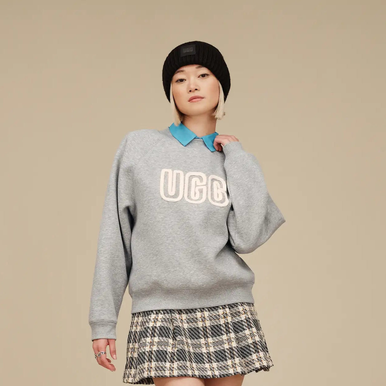 The UGG Logo Crewneck is a casual classic made with a soft cotton blend from Responsible Cotton. Featuring raglan sleeves and Graphic UGG® Font made from chenille knit yarn, this sweatshirt is destined to be your favorite on days that end with Y.
