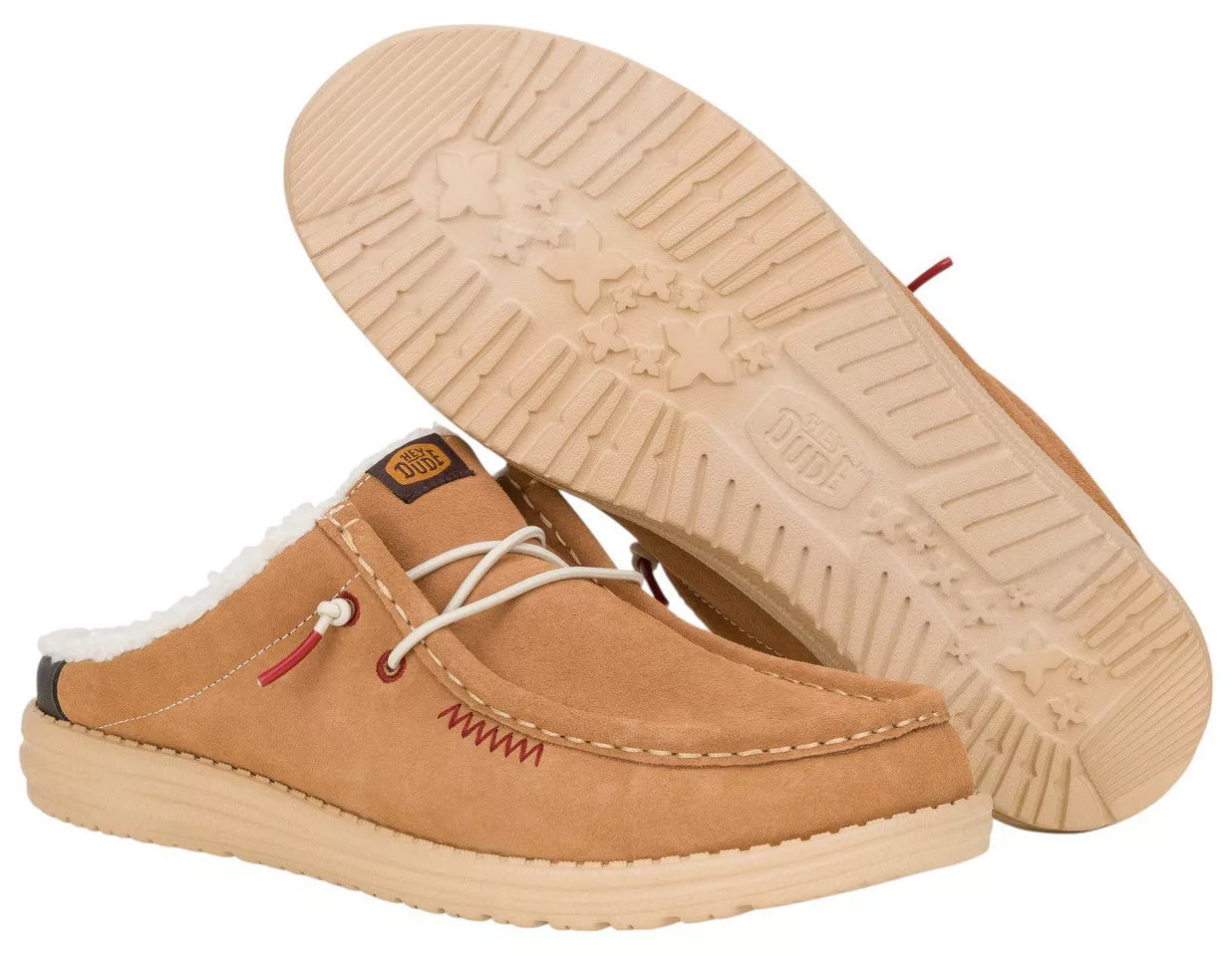 Be hooked to the peppy style and pampering comfort of the Wally Slip Warmth mule from Hey Dude. The suede slip-on, designed with a cushy foam insole, has a cozy lining that can keep you warm all day. Stretch laces ensure a more comfortable fit.